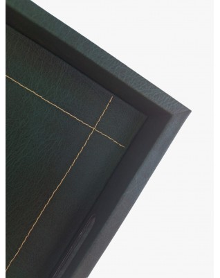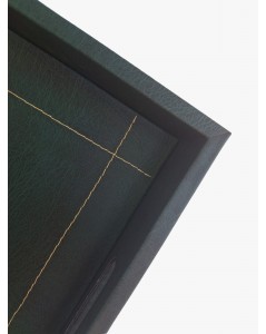 Hermosa bandeja forrada en eco cuero adaptable a tu menaje gracias a la variedad de colores que disponemos y con  su excelente diseño el cual te permite trasladar a cualquier habitación de tu casa gracias a las cómodas aperturas que tiene a su costado.